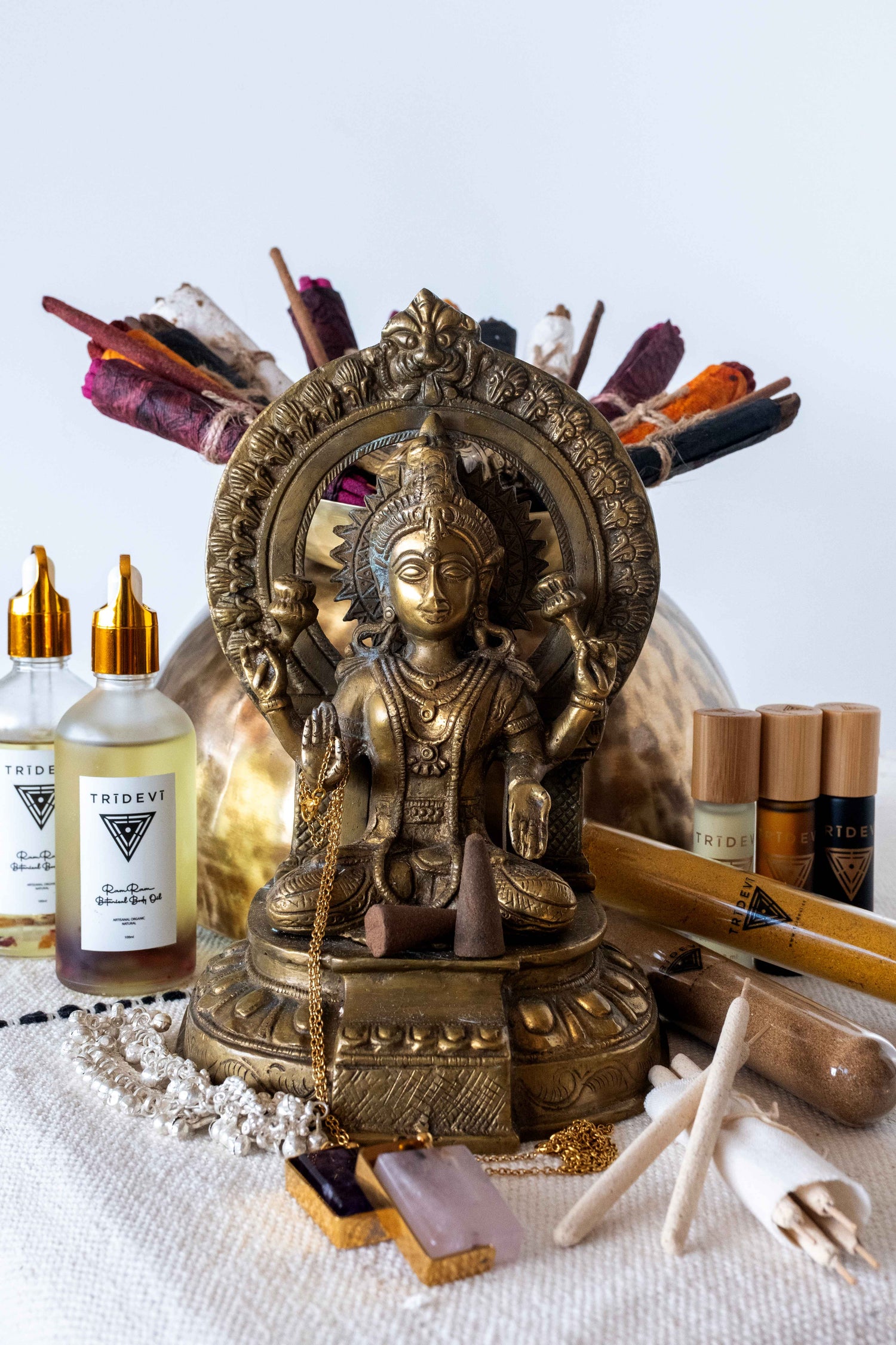 The Visionary of TrīDevī, Geeta Khanna, lives her life with the fundamentals that intention, prayer and love can magnify the energy of any offering whether it be a gift, the food you eat or the community you serve. Many of TrīDevī's offerings are extensions of Geeta welcoming you into her home and why each detail of our products are mindfully created to bring peace, beauty and calm into yours.